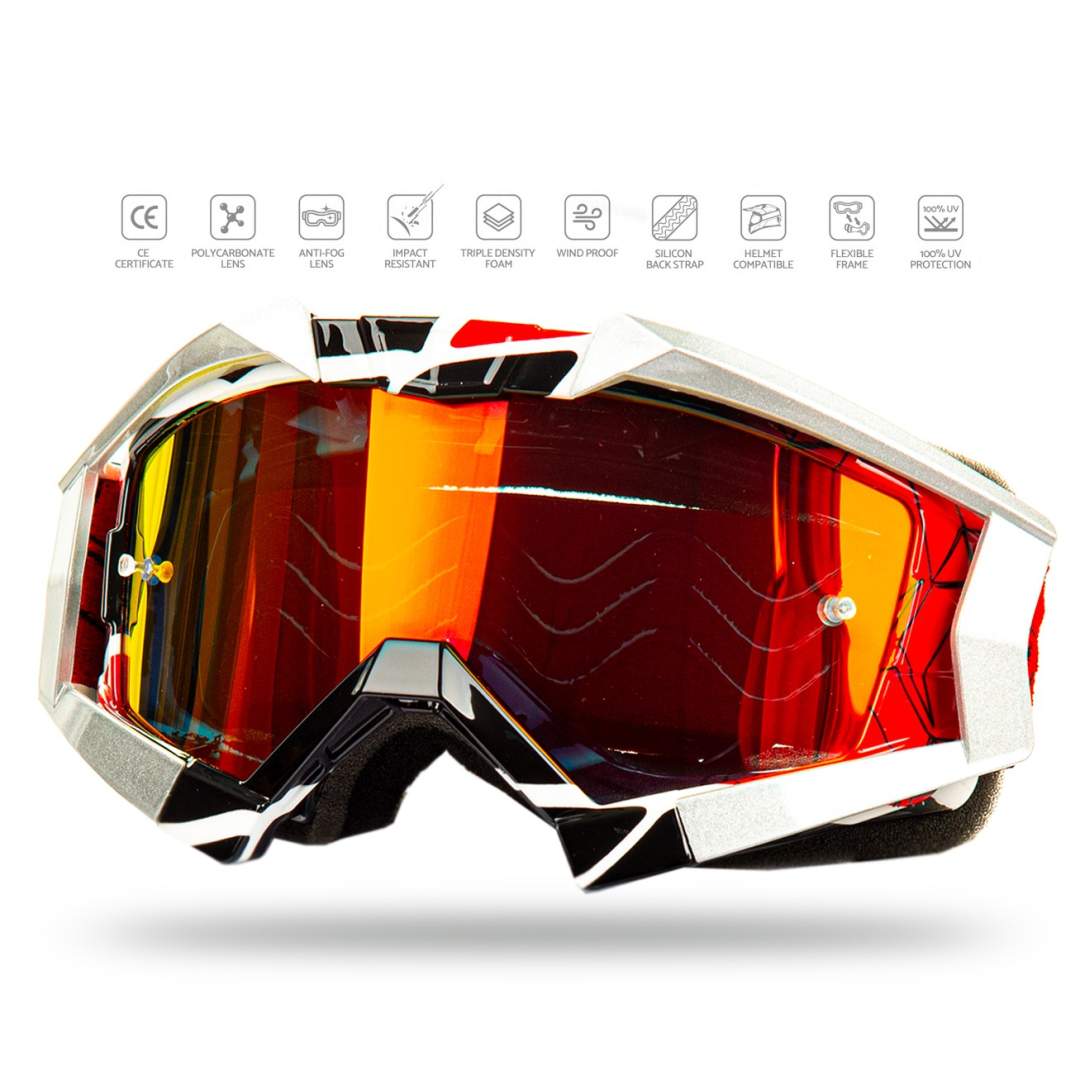 Кроссовые очки с защитой носа – обязательные атрибуты экипировки для мотокросса и эндуро. Эластичный корпус кроссовых очков GTX подходит почти на все виды шлемов. А трехслойная флисовая оправа обеспечивает отличное отведение лишней влаги от глаз и препятствует запотеванию. Ремень мотоциклетных очков обладает прорезиненными демпферами, которые позволяют избежать ее соскальзывания. По всему периметру расположено 18 вентиляционных отверстий, которые закрыты поролоном. Цветная линза изготовлена из поликарбоната, защищающая глаза от УФ лучей. Так же мотоочки имеют выносные подвижные аутригеры. Благодаря им данная модель будет отлично садиться в шлем и более плотно прилегать к лицу. Так же кроссовые мото очки подойдут для страйкбола и пейнтбола, катания на снегоходе, сноуборде, лыжах, квадроцикле и пит байке. Мотоочки подходят, как для детей, так и взрослых, так как регулируются и надежно фиксируются по размеру. Очки мужские эндуро обеспечат Вам дополнительную защиту от ветра, пыли, грязи, снега и других неблагоприятных факторов окружающей среды. Защитные очки будут приятным подарком для любителей экстремального спорта.