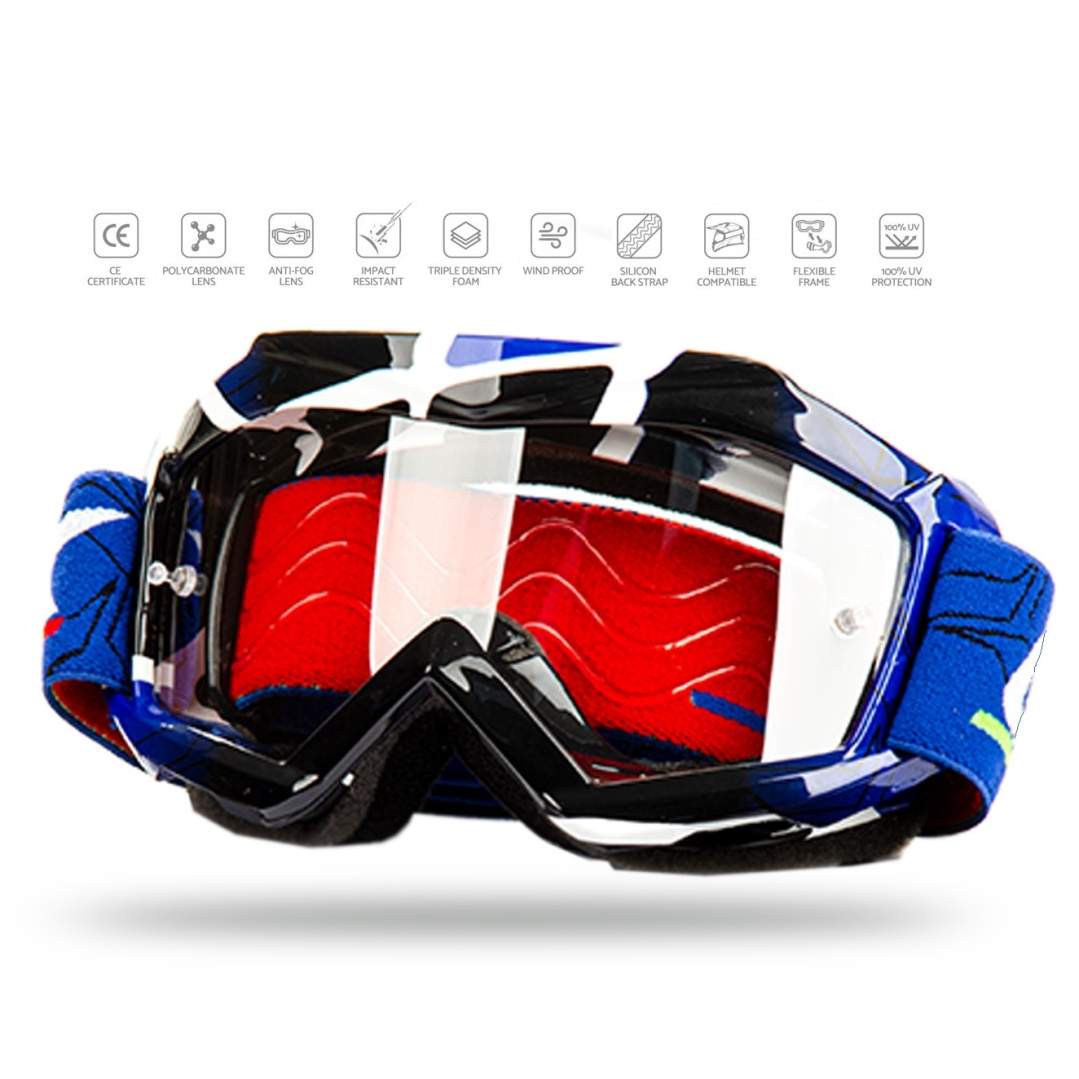 Материалы высокого качества, из которых они изготовлены, обеспечивают надежную защиту глаз от пыли, грязи и мелких камней, которые могут подняться во время езды на трассе, а также предлагают панорамный обзор для комфортных тренировок и игр.